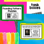 Given picture/description puzzle pieces, the student will independently match each Founding Father with his key contribution to U.S. history with 80% accuracy across 3 consecutive sessions, as measured by teacher-created task box data.