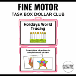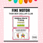 Given holiday-themed tracing cards representing celebrations from around the world, the student will independently trace each path or shape with 80% accuracy across 3 consecutive sessions, as measured by teacher-created task box data.