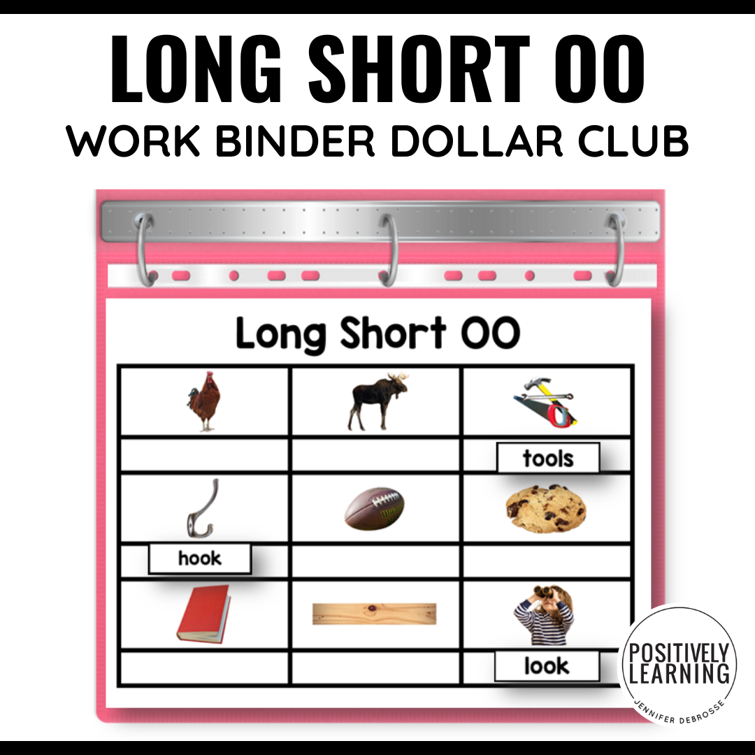 Given a structured independent work binder, the student will read words containing long and short /oo/ vowel patterns (e.g., moon, book) and match each word to the corresponding picture with at least 85% accuracy across 3 consecutive sessions, completing the activity independently with no more than one prompt.