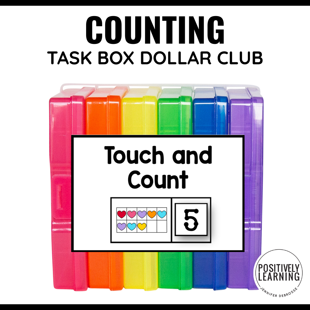 Given numerals with embedded touch points and corresponding visual objects, the student will independently use the touch-and-count strategy to identify quantities with 80% accuracy across 3 consecutive sessions, as measured by teacher-created task box data.