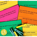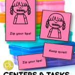 I introduce these language skills using these visual cards in the whole group I model matching picture and text card, then move the activity to small groups and independent centers. They are also perfect for early finishers.